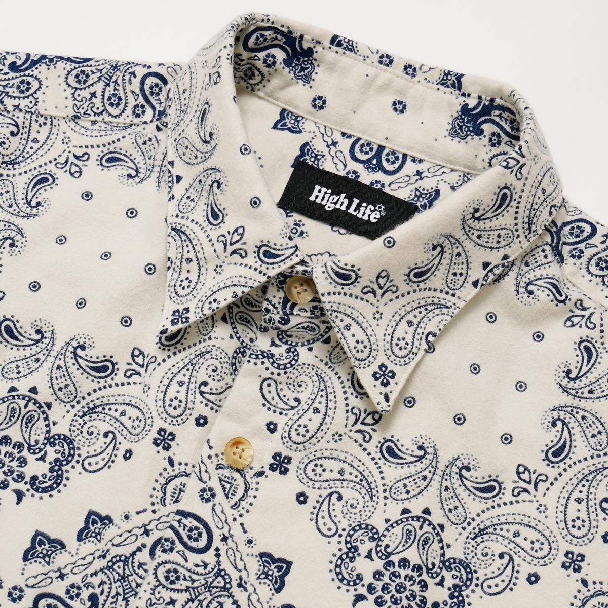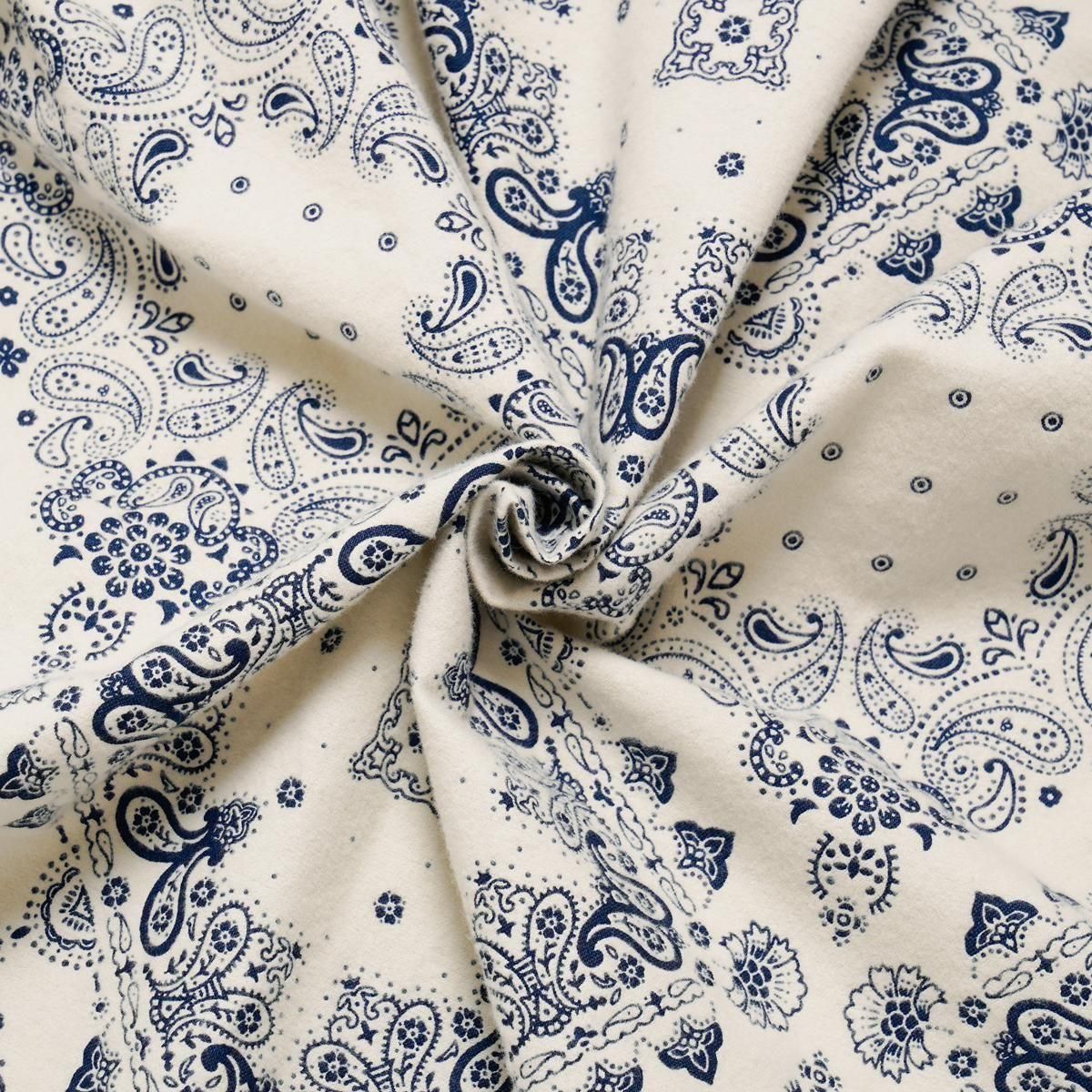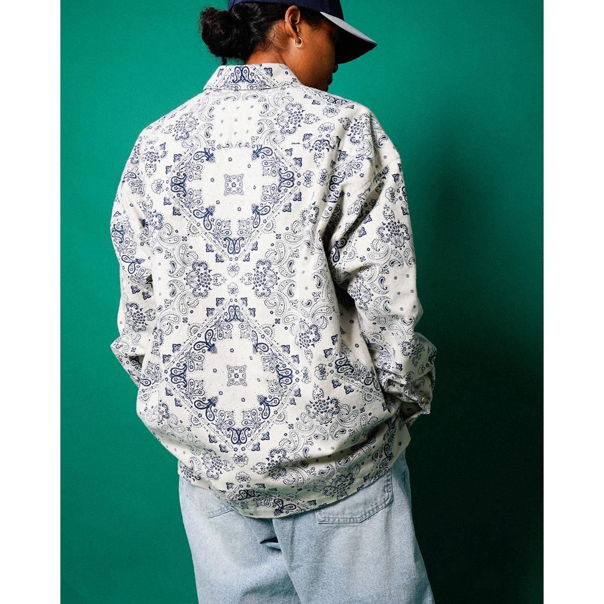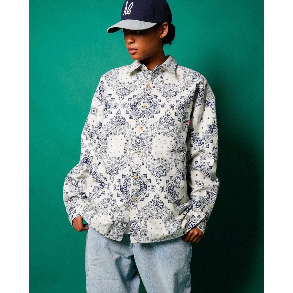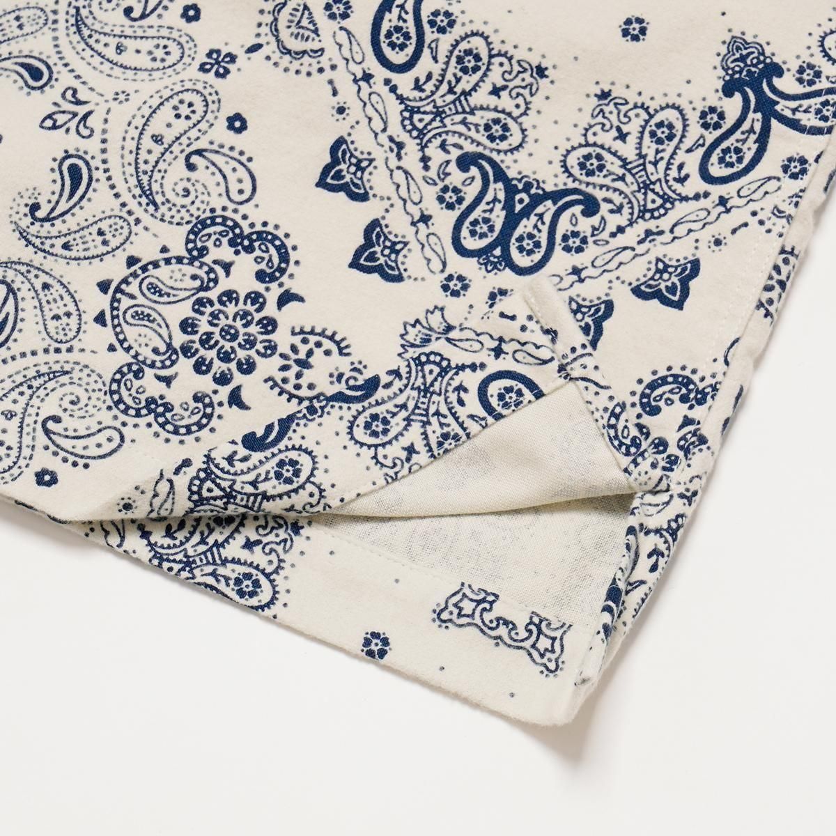 上質な国産コットンフランネル素材を使用、表面に微起毛加工を施し、柔らかく膨らみのある風合いに仕上げたバンダナ柄のネルシャツ。身幅にゆとりを持たせたクラシックなオリジナルシルエットが特徴。左ポケットにブランドネームを配置。生地から縫製まで国内の工場で生産された日本製の一枚。