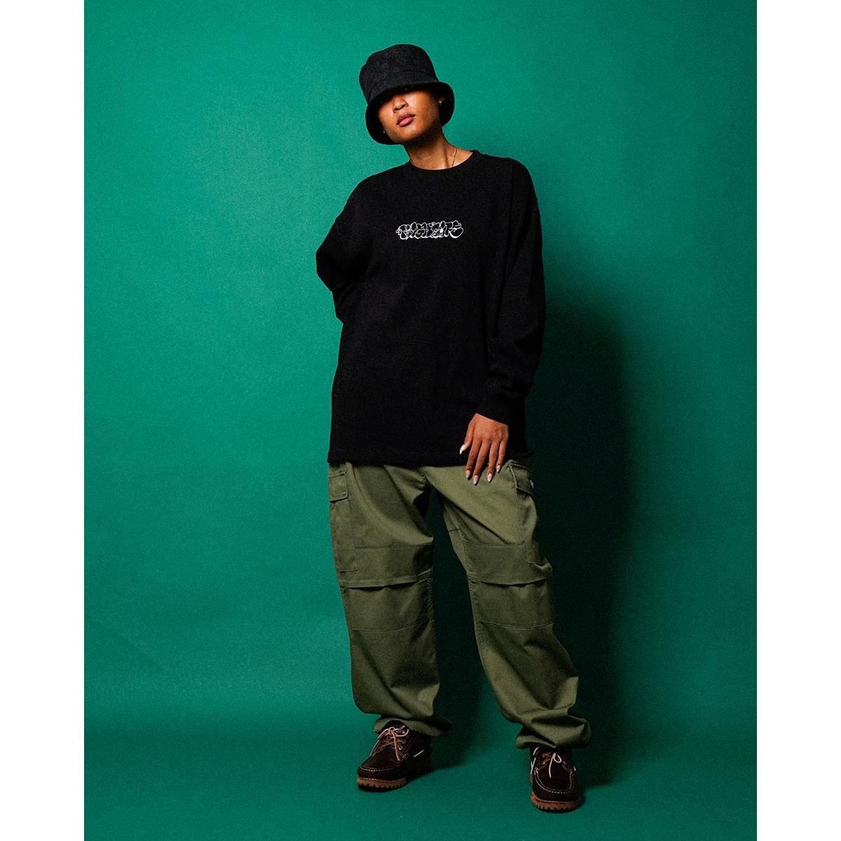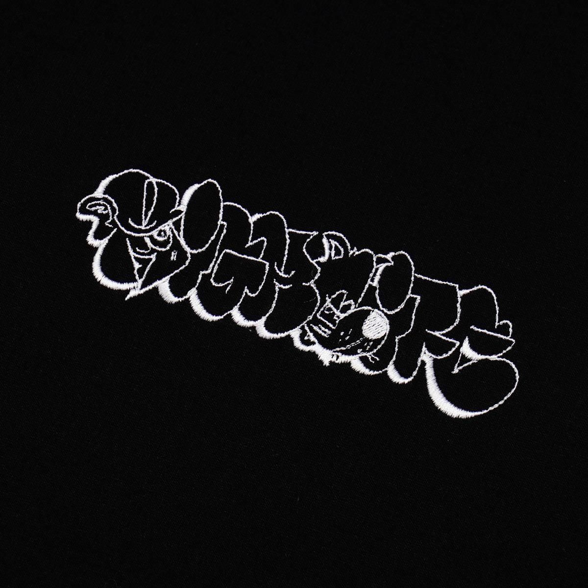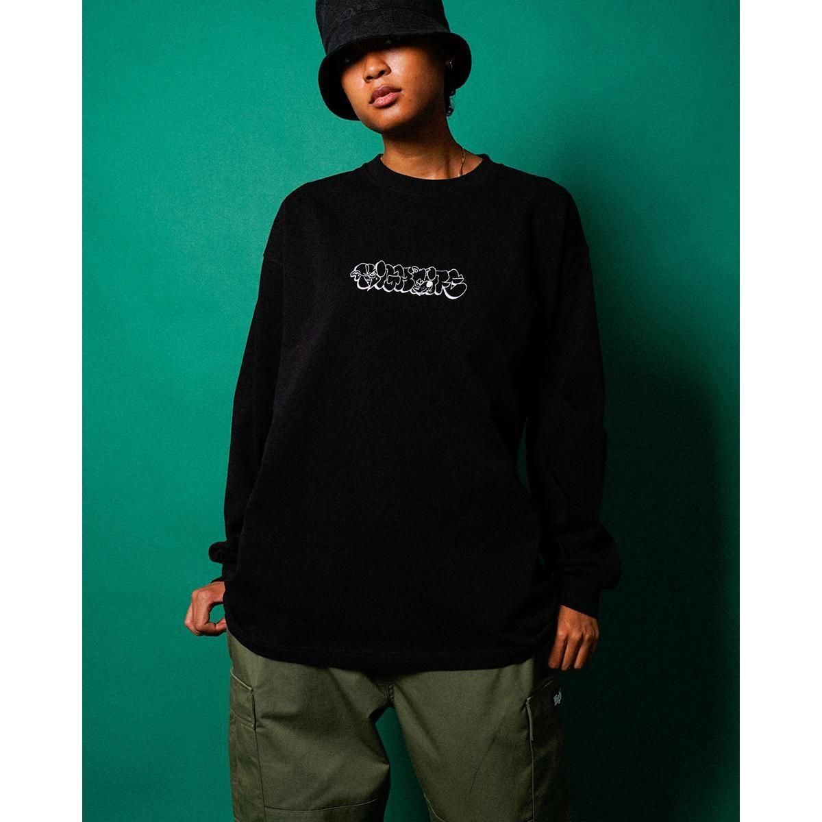 9.1oz 極厚でシャリ感のあるコットン素材を使用、ややワイドなボックスシルエットが特徴。グラフィティライター"TEAZ"が描いたグラフィックを刺繍で落とし込んだ一枚。HとLの部分がキャラクターになっている。