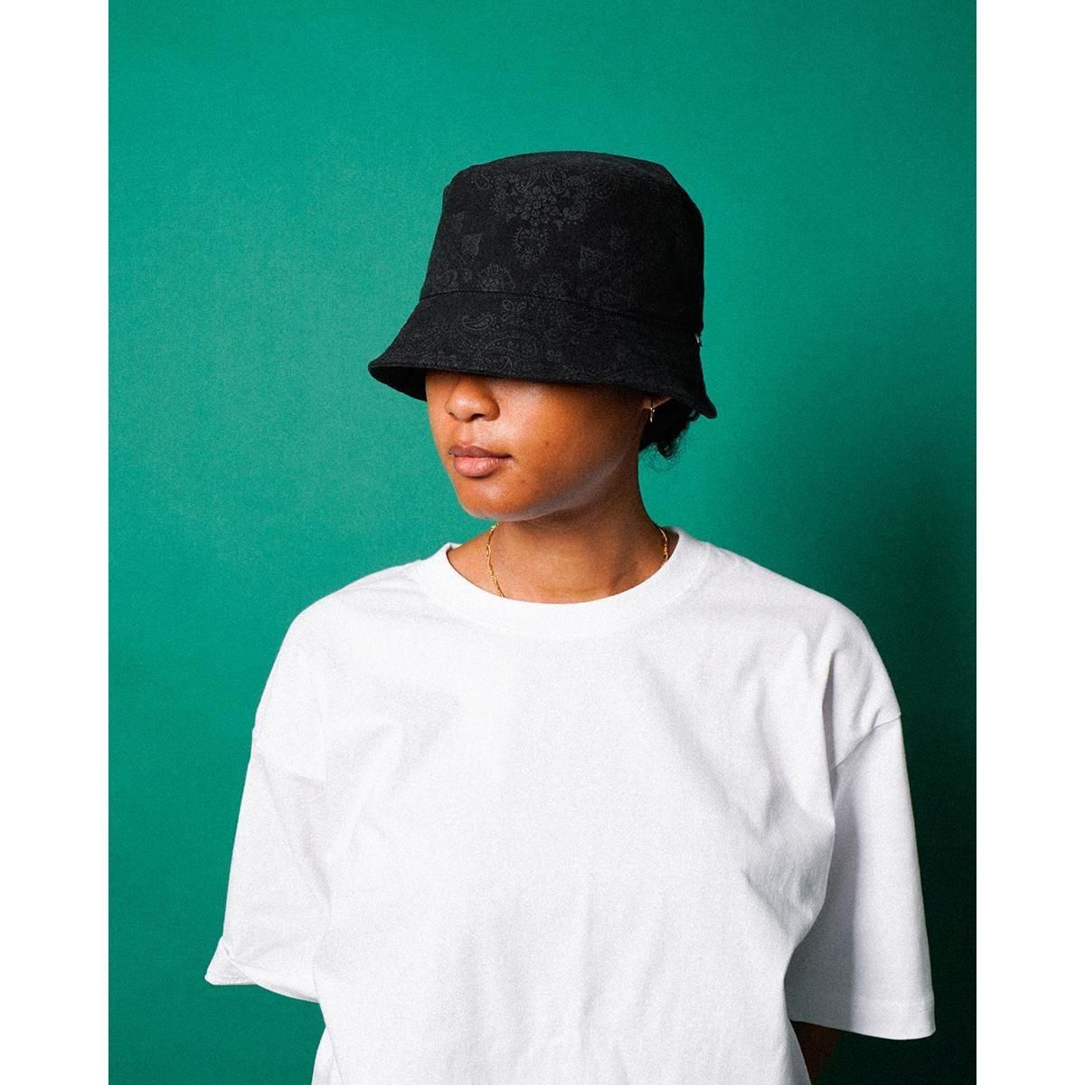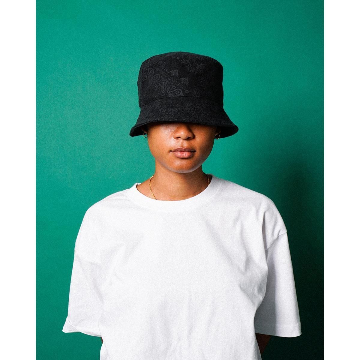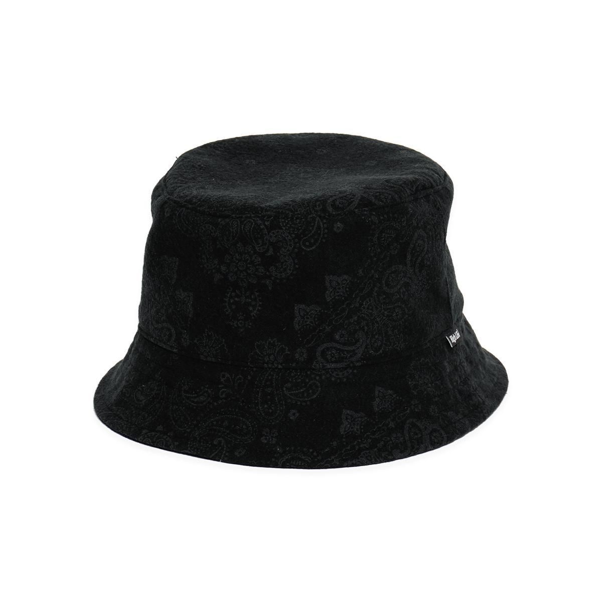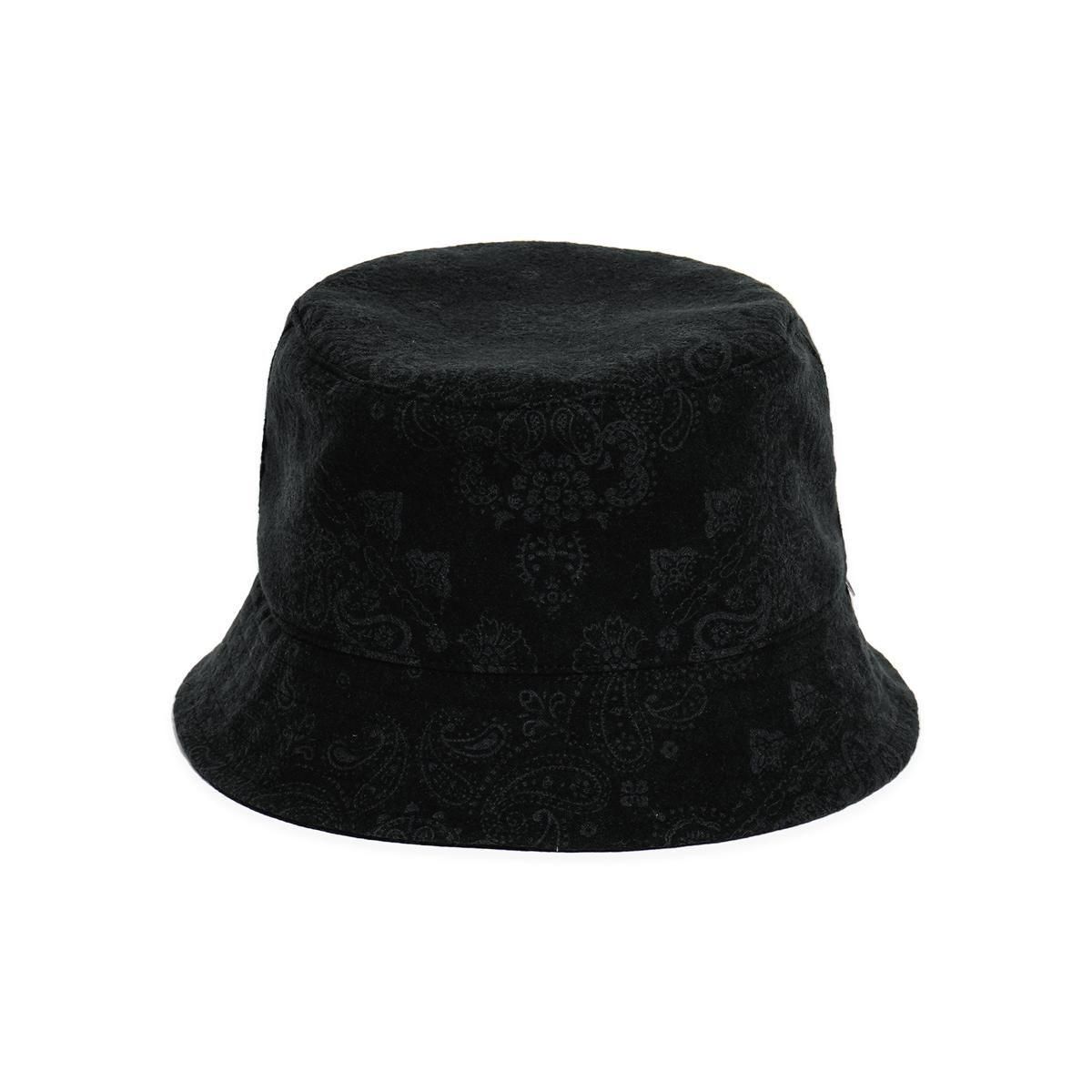 上質な国産コットンフランネル素材を使用、表面に微起毛加工を施し、柔らかく膨らみのある風合いに仕上げたバンダナ柄のバケットハット。左ツバ元にピスネームを配置、日本国内で縫製されたオリジナルシルエット。