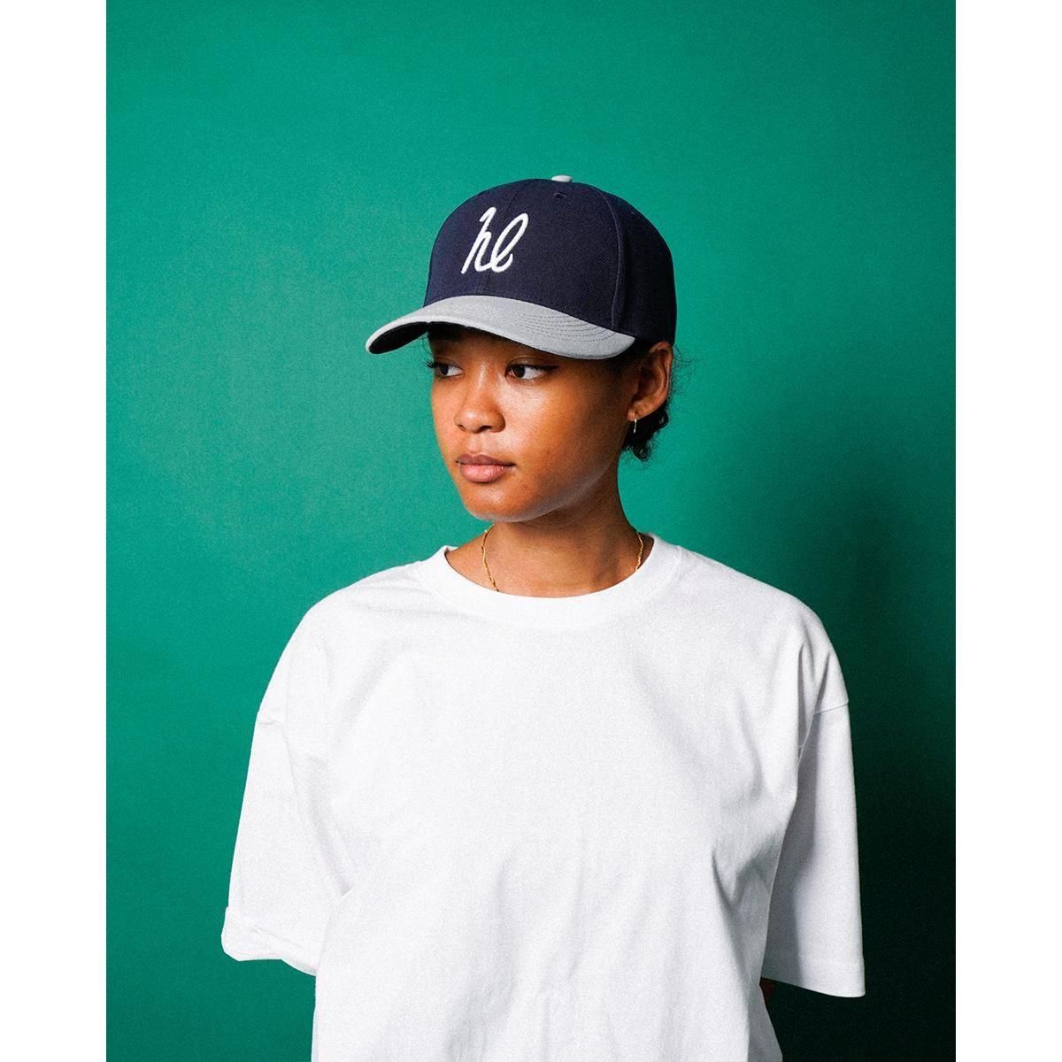 ブランドアイコン"hl"を3D刺繍でデザインしたクラシックなオリジナル6パネルスナップバックキャップ。ツバ幅を広めに設計、クラウンは丸みを帯びた流線型で深めのシルエットが特徴です。アジャスター横にピスネームを配置。