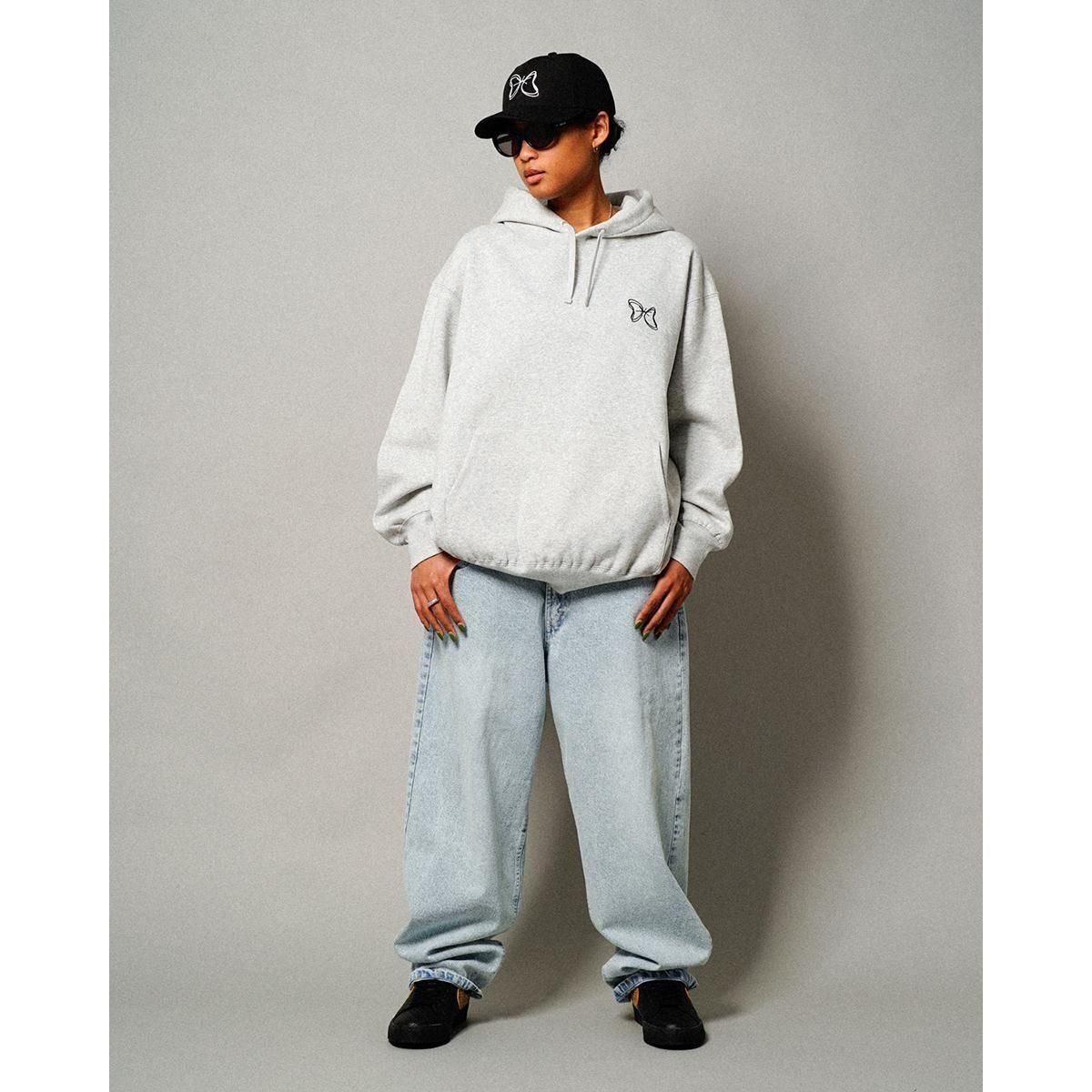 クラシカルなストリートウェアを現代風にブラッシュアップしたブランドオリジナルプルオーバーフーディー。肉厚のある素材感、深めのフードでゆったりとしたシルエットが特徴。ブランドNewアイコン"H"に見立てたミッドセンチュリーなデザイン、曲線を生かした勇気的で滑らかなフォルムが特徴。左胸は刺繍、背中は油性シルクプリント。