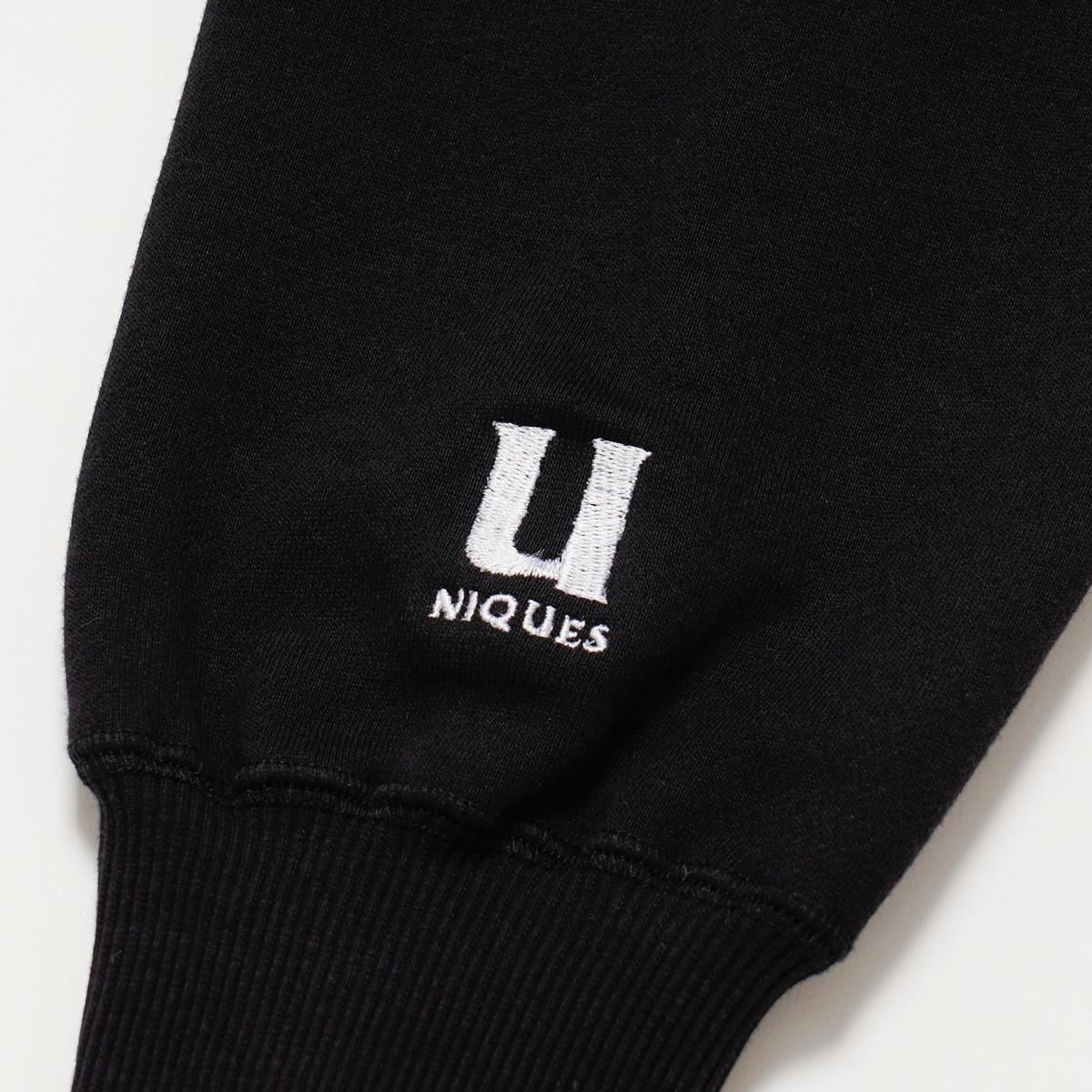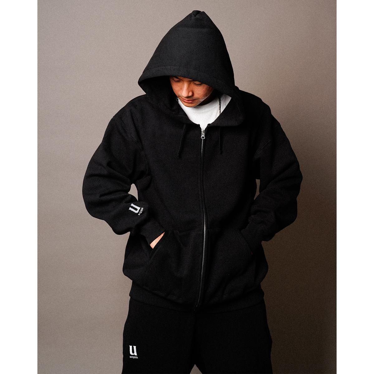 クラシカルなストリートウェアを現代風にブラッシュアップしたHighLifeオリジナルボディーを採用したジップフーディー。肉厚のある素材感、深めのフードでゆったりとしたシルエットが特徴。右袖にブランドロゴを刺繍で配置したシンプルな一枚。U Logo Sweat Pantsとセットアップで着用可能。